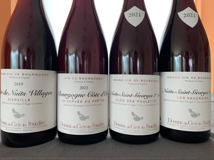 Domaine Clos des Poulettes is een warm, familiegedragen domein van ca. 16 hectare in het hart van de Côte de Nuits, met wijngaarden in o.a. Nuits-Saint-Georges, Corgoloin en Vosne-Romanée. Wat dit huis bijzonder maakt, is de vrouwelijke lijn van vinificatie die al meer dan zeven generaties wordt doorgegeven, en vandaag gedragen wordt door Hélène Michaut-Gaudeul.